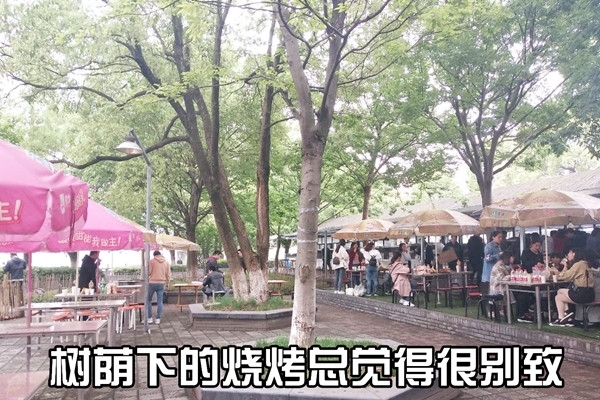 畢竟是老牌的燒烤圣地了,以前這樹(shù)下可都是泥濘地,現(xiàn)在都鋪上了磚,樹(shù)蔭下吃吃喝喝打打牌,這小日子,絕了。