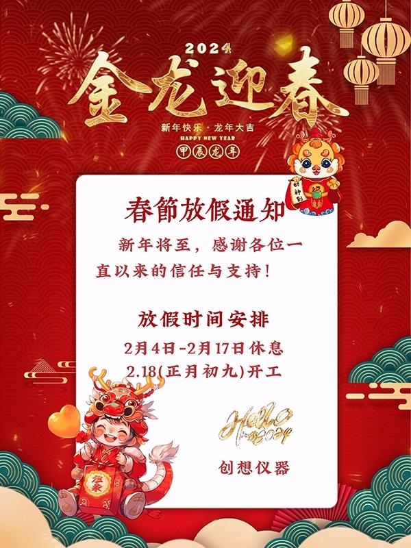 2024年新春佳節(jié),創(chuàng)想儀器對(duì)今年的春節(jié)放假作以下安排: