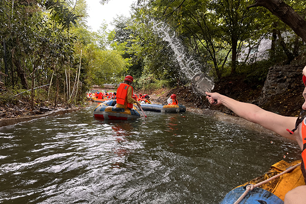 在享用豐盛的午餐后,午后,我們乘坐大巴車前往竹海漂流,迎接更為刺激的漂流活動(dòng)。穿上救生衣,坐上漂流艇,我們仿佛化身成了勇敢的探險(xiǎn)家。隨著水流的起伏,漂流艇時(shí)而飛速下滑,時(shí)而緩緩漂流,我們的心情也跟著起伏不定,既緊張又興奮。