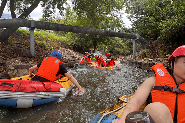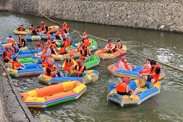 漂流過程中,趣事連連。有的同事因?yàn)樗魈?,不小心“翻船”,引得大家一陣歡笑;有的則是因?yàn)樘^緊張,劃船的動(dòng)作顯得有些笨拙,但正是這些小插曲,讓我們的漂流之旅更加充滿了歡聲笑語。