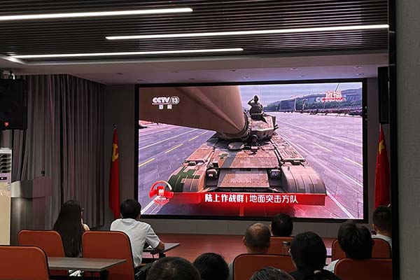 上午9時(shí),閱兵式正式開(kāi)始。當(dāng)嘹亮的國(guó)歌聲響起,全體員工自發(fā)起立,齊聲高唱,莊嚴(yán)的氛圍感染著現(xiàn)場(chǎng)每一個(gè)人。分列式上,中國(guó)人民解放軍將士們步伐鏗鏘、意氣風(fēng)發(fā);新型武器裝備依次亮相,展現(xiàn)出現(xiàn)代化國(guó)防力量的強(qiáng)大實(shí)力;一個(gè)個(gè)震撼人心的畫(huà)面,讓在場(chǎng)員工心潮澎湃,民族自豪感油然而生。閱兵儀式令人心潮澎湃,不僅增強(qiáng)了民族自豪感,也更深刻體會(huì)到和平的珍貴與奮斗的意義。