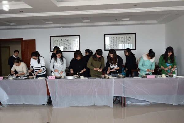 早上9點(diǎn)全體員工早早地開始活動(dòng)準(zhǔn)備工作,大家一起動(dòng)手,有的洗菜、有的切菜、有的拌餡,有的布置場地,忙得不亦樂乎,好像一家人一樣其樂融融。一切準(zhǔn)備就緒后活動(dòng)就正式開始了。
