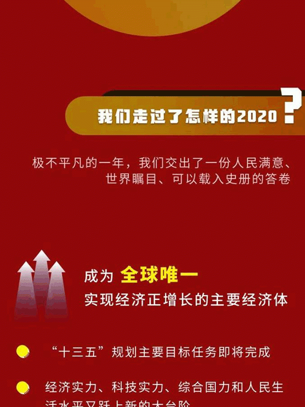 會議認為,今年是新中國歷史上極不平凡的一年。面對嚴峻復雜的國際形勢、艱巨繁重的國內(nèi)改革發(fā)展穩(wěn)定任務特別是新冠肺炎疫情的嚴重沖擊,我們保持戰(zhàn)略定力,準確判斷形勢,精心謀劃部署,果斷采取行動,付出艱苦努力,交出了一份人民滿意、世界矚目、可以載入史冊的答卷。我國成為全球唯一實現(xiàn)經(jīng)濟正增長的主要經(jīng)濟體,三大攻堅戰(zhàn)取得決定性成就,科技創(chuàng)新取得重大進展,改革開放實現(xiàn)重要突破,民生得到有力保障。這些成績來之不易,歷經(jīng)艱難險阻,是以習近平同志為核心的黨中央堅強領導的結果,是全黨全軍全國各族人民團結奮戰(zhàn)的結果。