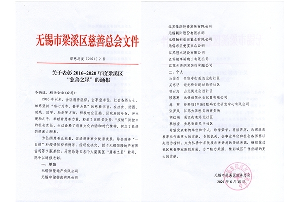 此次無(wú)錫市梁溪區(qū)慈善總會(huì)為表彰2016至2020年間,在扶貧、助困、助殘、助學(xué)、助老、“疫情”防控中做出貢獻(xiàn)的單位及個(gè)人授予梁溪區(qū)“慈善之星”稱號(hào),以通報(bào)表彰。創(chuàng)想儀器顧惠惠女士有幸得此殊榮,作為一名企業(yè)領(lǐng)導(dǎo)人,在“疫情”防控中奉獻(xiàn)自己的力量是應(yīng)盡的責(zé)任。我們將珍惜榮譽(yù),再接再厲,為梁溪慈善事業(yè)作出更大的貢獻(xiàn)。
