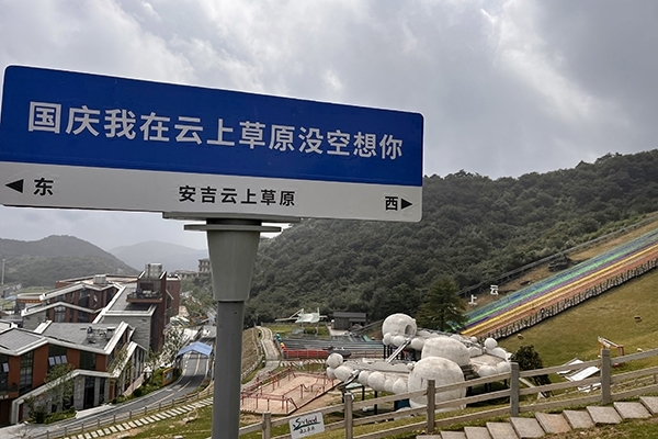 因為在云端,有云有霧實在太正常了,讓我拍出來的照片,都帶了層層的天然濾鏡。小伙伴們都去找項目玩上了:在“‘懸崖秋千’,驚聲尖叫”、“‘水晶廊橋’,一步一趨”、“‘凌空飛步’,顫抖蹦跳”、“‘云中漫道’,站立云端”、“空中自行車”、“彩虹滑草”、“軌道滑草”、“射箭”、“射擊”、“卡丁車”等等多項活動,讓人流連忘返。我們一起來看。