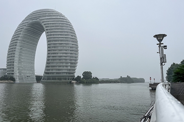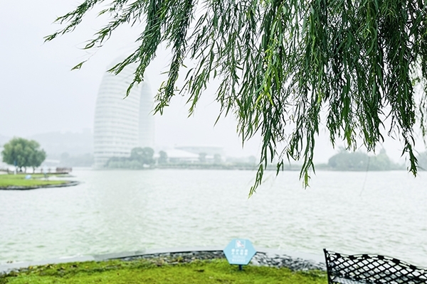 次日,來到月亮廣場轉(zhuǎn)一轉(zhuǎn),有道是上車睡覺,下車拍照,車上補的是前日的疲勞,打卡拍的是湖邊的錦繡風(fēng)光,卻不知有沒有看到那著名的“馬桶圈”,月亮酒店。
