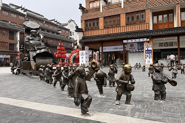 臨到傍晚,結(jié)束了安吉的行程后,我們乘坐大巴前往下個目的地,位于湖州長興縣東魚坊的宿舍。這里離次日龍之夢古鎮(zhèn)不遠,晚上也可乘機逛逛東魚坊文化歷史街區(qū),燈光下,熱鬧非凡。