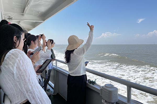 在清晨七點半的晨光中,滿載歡聲笑語的大巴,如同一艘陸地航船,載著我們駛向那片心心念念的蔚藍(lán)。一路上的談天說地,讓四個小時的車程變得輕快。當(dāng)咸腥的海風(fēng)透過車窗拂面而來,我們便知,目的地近了。沈家灣碼頭人頭攢動,我們的興奮之情也隨著海浪輕輕蕩漾。登上游輪,劈波斬浪,船艙內(nèi)是同事們不絕于耳的驚嘆與快門聲。那一刻,所有工作的疲憊仿佛都被海風(fēng)吹散,拋在了身后。
